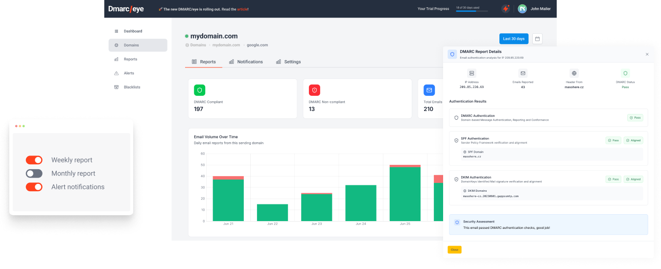 What do you like best about DmarcEye? Ease of Use: DMARCeye is engineered with the end-user in mind, making it an ideal choice for those who are not necessarily tech-savvy. What do you dislike about DmarcEye? Sometimes it might be hard to understand DMARC errors, but I guess this is more of a DMARC problem itself. What problems is DmarcEye solving and how is that benefiting you? DMARCeye makes it easy to monitor and understand DMARC reports.